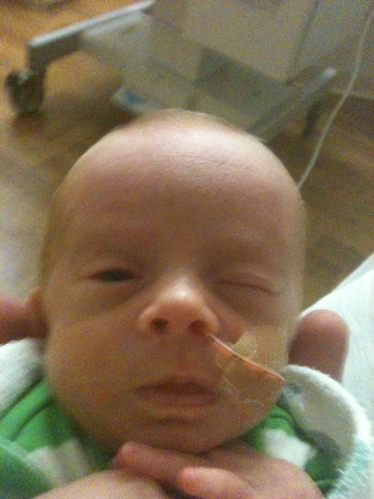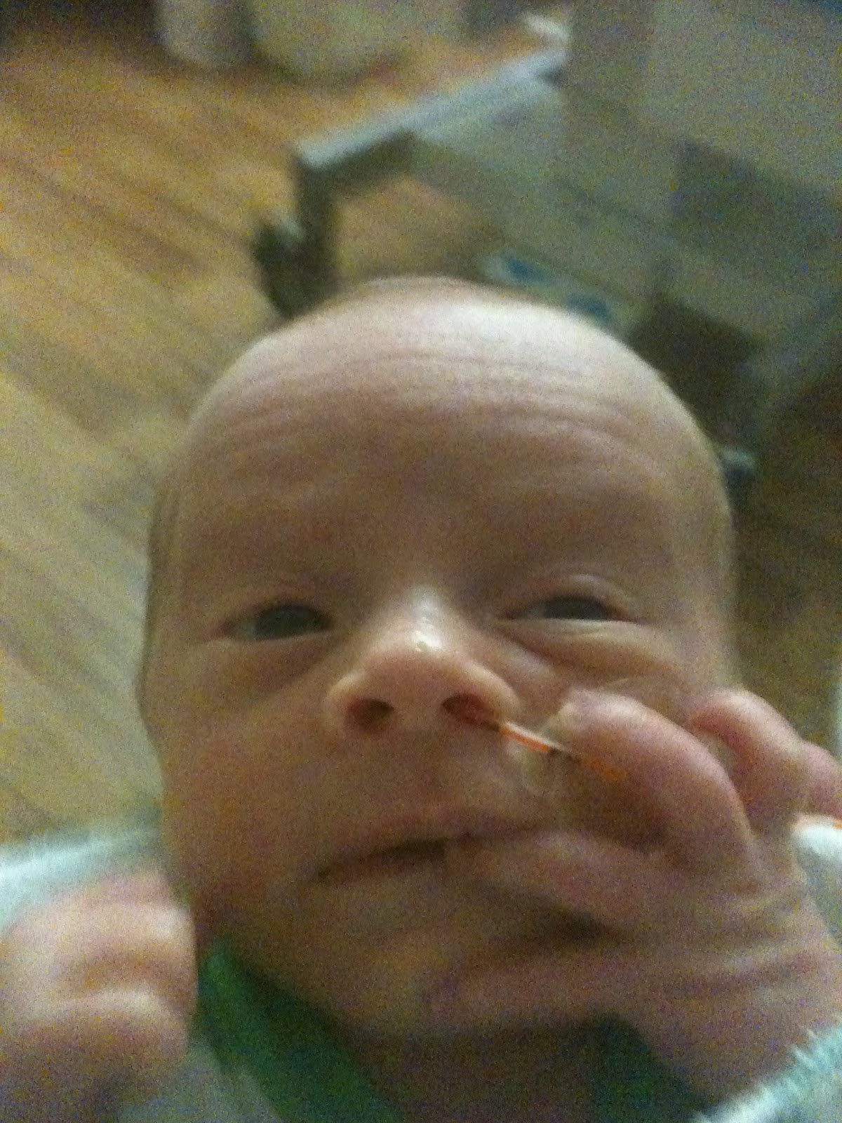 What wonderful news . Will continue to pray about weight gain and nursing. The pictures are great ! Oh I just love him !!!! He looks so strong in the pictures. He is a warrior just like his Mama and Papa